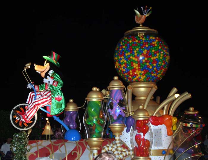 It was then a short wait for the castle projection show "The Magic, The Memories and You – Holiday Edition" and the new holiday part was fantastic. The castle turned into boxes of presents, which then unwrapped. There was another short wait for the holiday version of Wishes. Great fireworks; and Tinkerbell flew very close over us – I liked our location. We then went to find the free hot chocolate and cookies and found them in Cosmic Rays. The hot chocolate was sweet and smooth - not watered down at all! The cookies were snicker doodles. We sat down to enjoy them while watching Santa Goofy and Pluto dancing with the crowds.