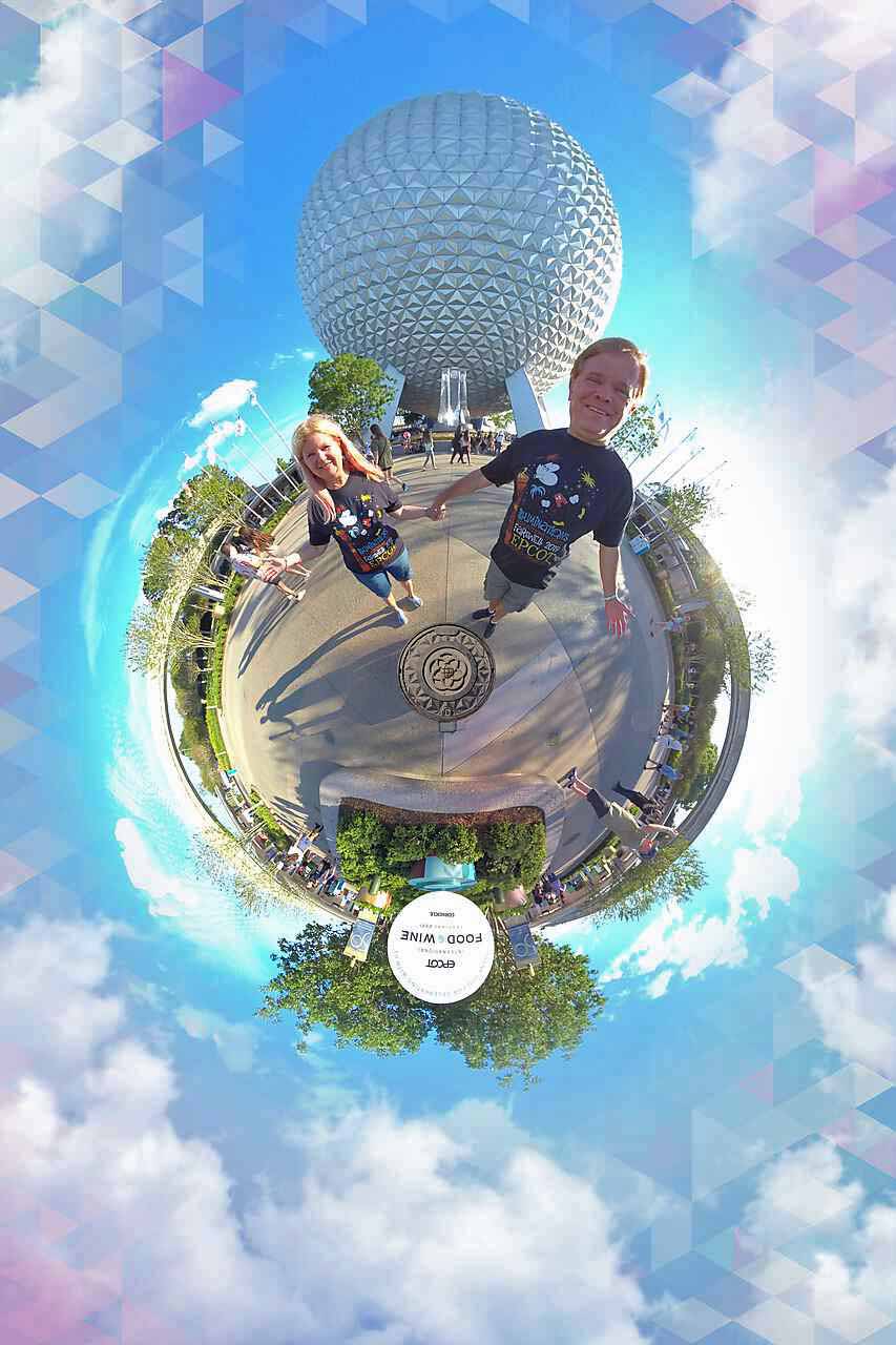 We arrived in EPCOT at 5:30pm. We took a cool 360 degree photopass photo in front of Spaceship Earth.