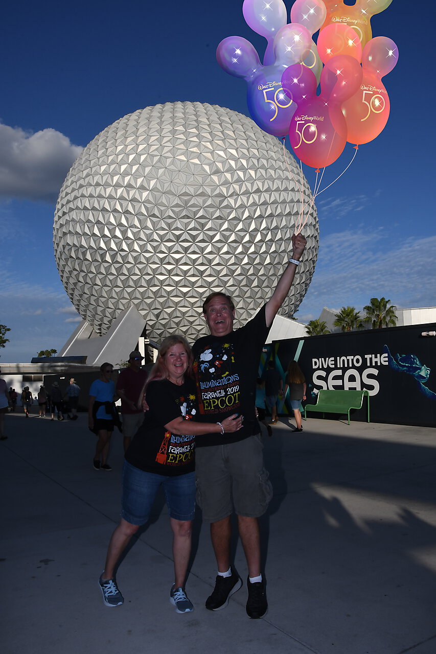 We stopped at the exit to view the new lights on Spaceship Earth before calling it a night.