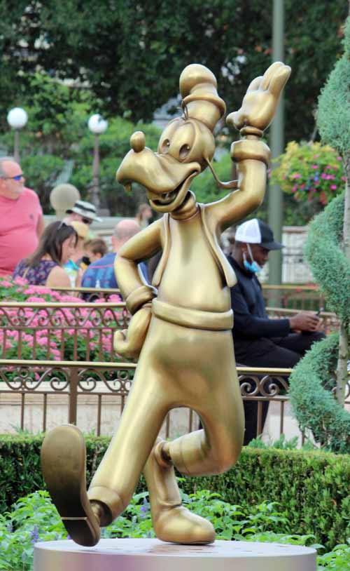 We shopped in the Pirates Bazaar and made our way to the front of the castle and found some of the 50th anniversary gold statues, including Pooh, Tinker Bell, Dumbo, Pluto and Goofy.