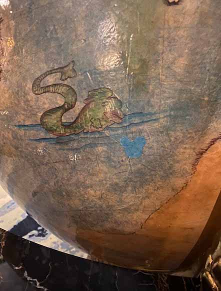 After dinner we explored the resort, shopping in the Ale and Compass gift shop and we found the hidden mickey on the globe near the sea serpent in the main lobby.