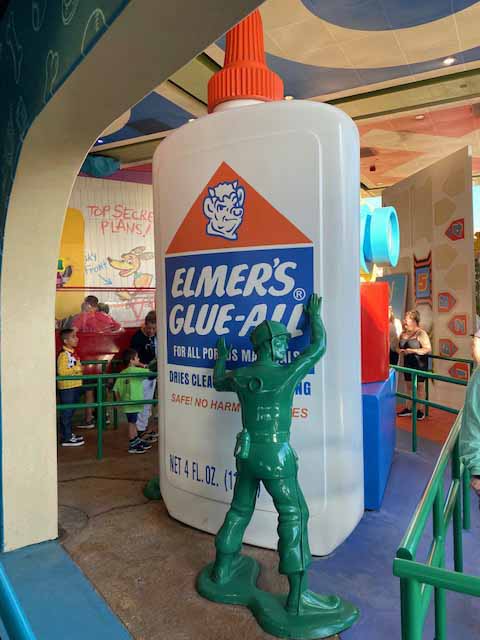 I then had issues with Genie Plus on my phone, unable to connect and get another pass. We stopped at Woody’s Lunchbox for a Hazelnut Tart and a Raspberry Tart. We loved the raspberry one back in July, but the hazelnut tart was just OK. Playing with the phones, I was able to use Kelli’s phone to get a LL pass for Alien Swirling Saucers. This is a good point to know, if one phone has issues, you may be able to use another one’s phone in your group to set up LL passes. We stopped at a guest relations kiosk to get help with Genie plus. They suggested upgrading my phone software to the latest version. I did and that took a long time but did seem to help the app to work better.