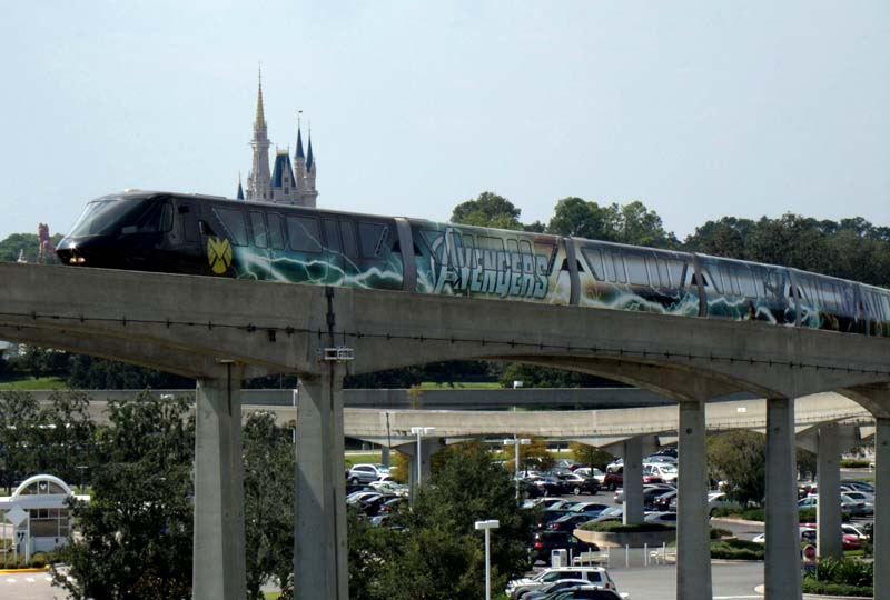 It was getting hot (92 degree with a feel like of 98). Back at our studio I did a 30 minute power nap. After that I let Kelli rest and went out to explore the resort and try to get a picture of the Avengers monorail. The court yard before the pool had both shuffleboard and bocce ball courts. People were playing in each one. The pool looked refreshing so after a successful shot of the monorail from the bridge connecting Bay Lake Tower with the Contemporary, I dropped the camera off at the room and headed down to the pool for a dip. I tried the slide once and then looked for the secluded beach behind the pool. To get to it you have to enter the fenced off pool and then look for a gate behind the stairs to the slide. Looks like a nice place to relax, if the pool activities aren’t too loud.