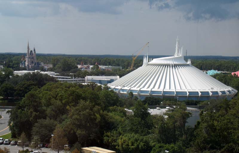 We were in a studio, room 8240 on the 12th floor. Our balcony overlooked Bay Lake and the marina/pool area of the Contemporary. We could just make out in the far distance Spaceship Earth at Epcot, the Swan & Dolphin Resorts, the Sorcerer’s Hat and the Earful Tower in the Studios and Everest at Animal Kingdom.