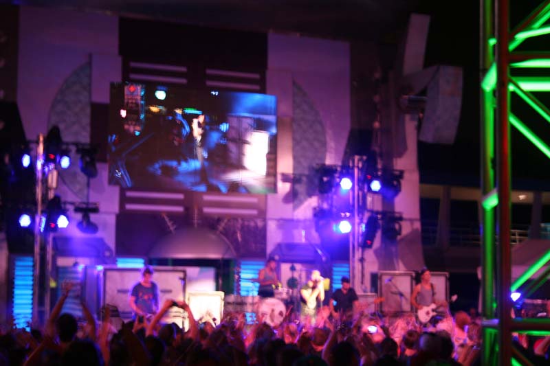 After their performance we took a walk and rested on a rock wall outside the Ye Olde Christmas Tree Shop. The last show off the night was MercyMe at midnight; we had recently seen them at Citifield after a Mets game. About two songs in, the band was interrupted by shouts for 911. It seemed a girl had passed out near the stage. The lead singer did a good job dealing with this scary situation. The crowd was concerned, quiet, and very cooperative. We have yet to find out if she was alright. The rest of the set was a bit more subdued due to the situation and I think the entire crowd appreciated it