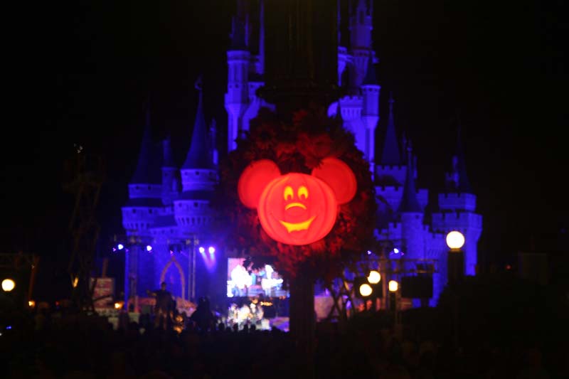 It was near seven so most of the Night of Joy crowd was already in and our wait for security and turnstile was very short. The kingdom closed for regular guests at 7 and many were still making their way out of the park. We had wrist bands indicating we had tickets for the Night of Joy (NofJ) and had to show the cast members them at the top of main street to continue. Kelli bought a NofJ T-shirt and we headed to the hub to wait for the first band to play.