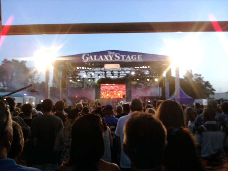 About half way through their set I went off to explore. Disciple was playing at the Rockettower Plaza Stage – more of a head banging rock band. They sounded good. You could get fairly close and you could easily sit a little farther away in and around the Lunching Pad (not open) area. There was some DJ/ radio station inside Cosmic Ray’s Starlight Café but the food lines here were long, 20 people each line! I was glad to have a big meal before getting here.