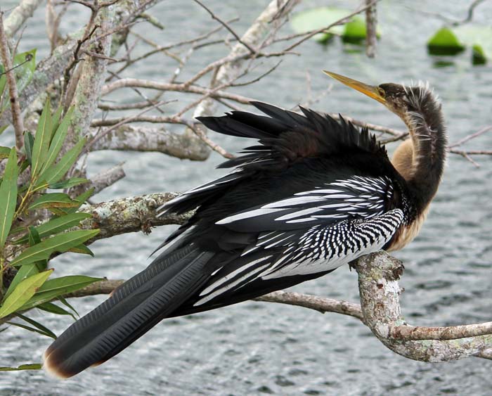 The boat went up the narrow Buttonwood Canal where we saw a variety of herons and egrets along with White Ibis, Belted Kingfishers, Pied-billed Grebe, Anhinga and cormorants. We then crossed a birdless Coot Bay. Coots once wintered here in the thousands, but the salt water intrusion when the canal was first built changed the ecosystem and the coots never returned. Next was up Tarpon Creek where native Florida Butterfly Orchids were pointed out; but were not in bloom. We briefly entered Whitewater Bay before heading back. We finally found some baby American Crocodiles in Buttonwood Canal before our boat tour ended.