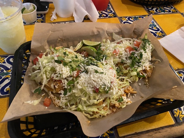Dinner was at Nana's Taqueria, also just down the road from our hotel on South International Boulevard (1015). Kelli and I enjoyed a strawberry margarita and a frozen lime margarita. Kelli had the steak tacos, I had the chalupas and Mark the Flautas. We shared desserts of choco flan and tres leches.
