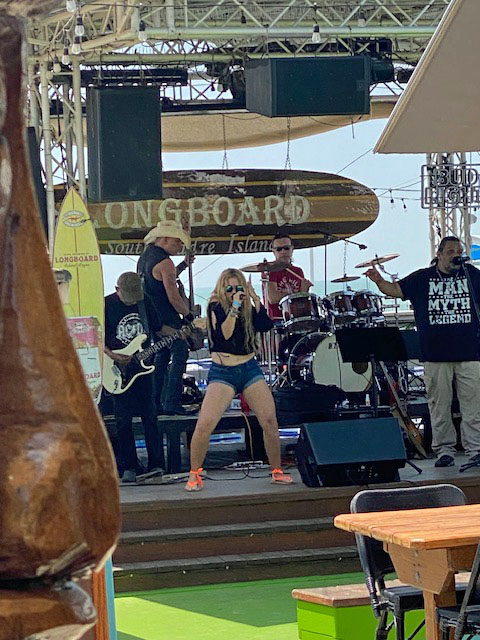 We had lunch on South Padre Island at the Longboard. A band was playing. Kelli and I shared shrimp cocktail and chicken lime tacos.