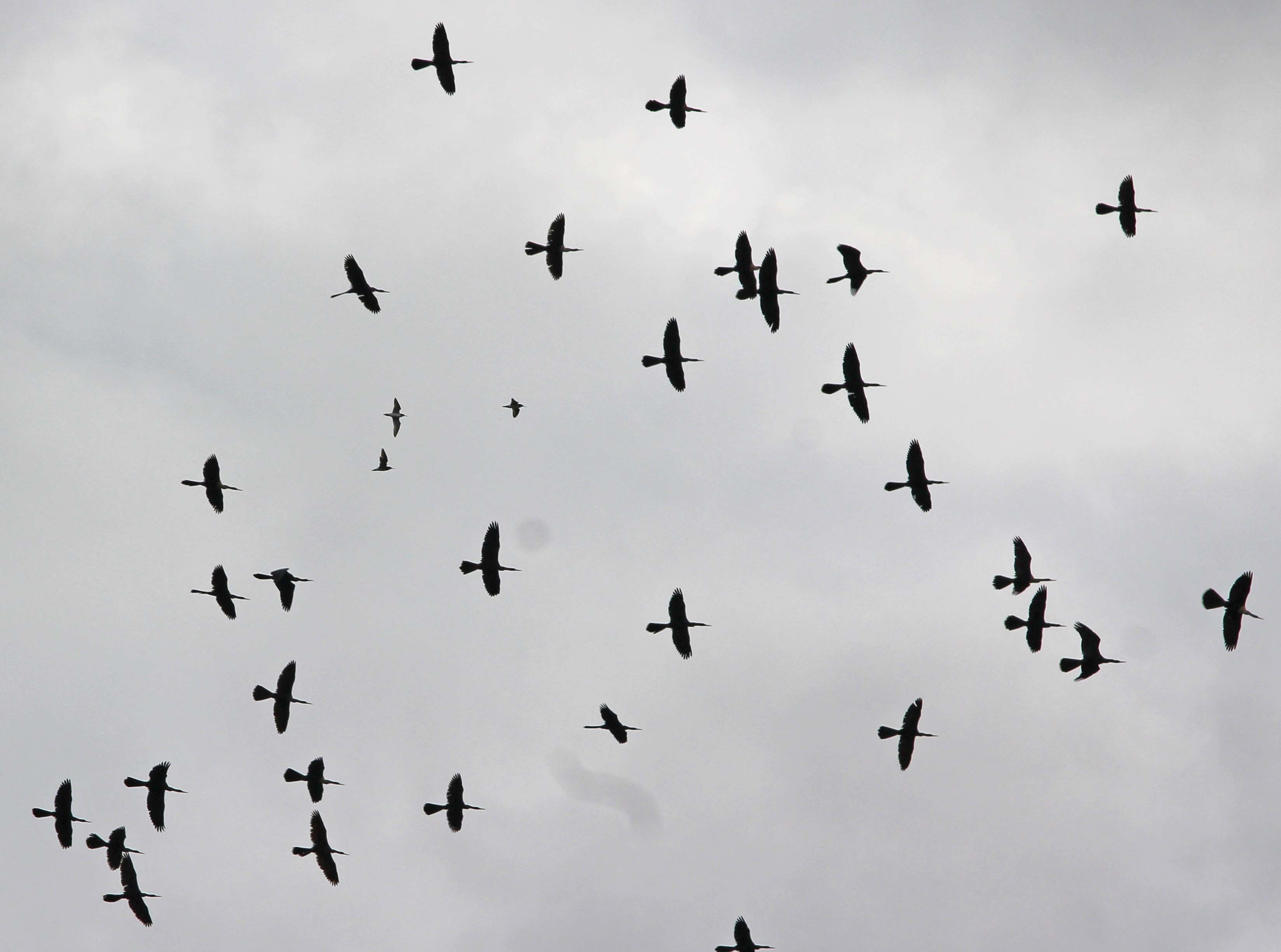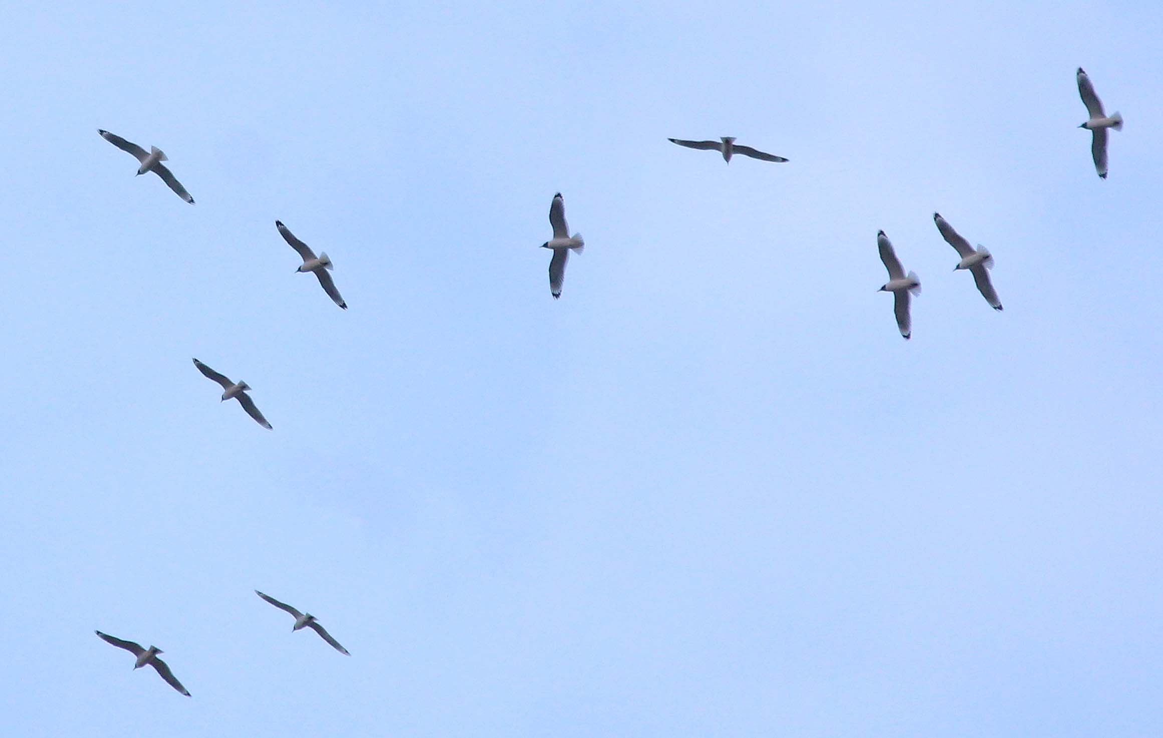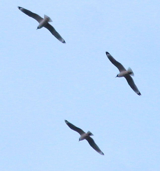 A large kettle of birds drifted in toward us. They were gulls. When they got closer, we could see their black heads, but they were not Laughing Gulls, their wing had black and whitetips – Franklin's Gulls!