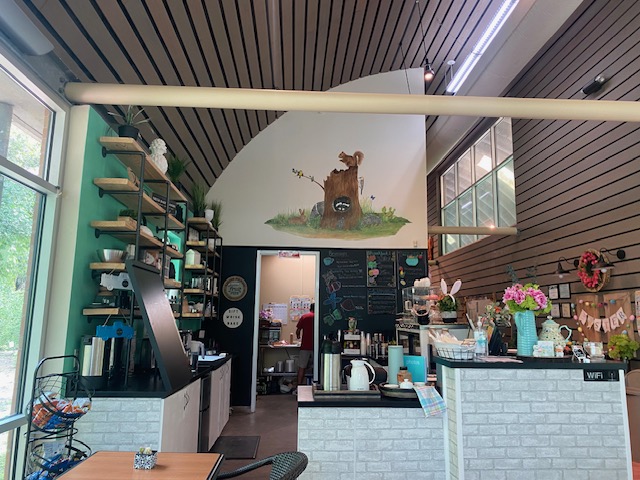 For lunch I had the breakfast spinach wrap with eggs, bacon, sausage, hashbrown and cheese with a special in-house sauce. Kelli enjoyed the southwest wrap with a sun-dried tomato wrap with blackened chicken, corn, black beans and special sauce, and Mark the chicken salad croissant with cranberries, grapes, pecans, and honey. Mark also enjoyed one of their special Herbal Teas. The Australian, with hibiscus flower, raspberry, and sparkling coconut water. We all agreed that this was the best meal of the trip. We highly recommend it.