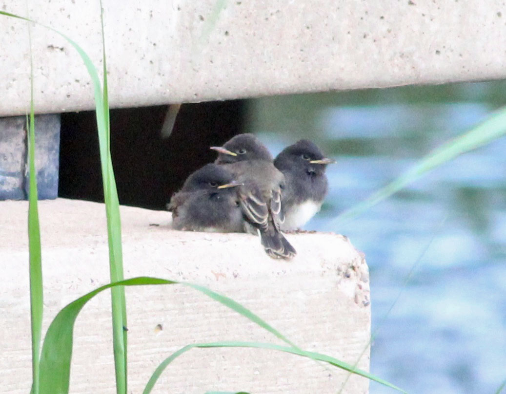 We headed a bit further south on South International Boulevard to Llano Grande Lake for some sunset birding.A few Roseate Spoon bills flew over as we exited our cars. On the bridge abutment I saw these puffy cute fledglings. They were Black Phoebes! We also saw the parents nearby.