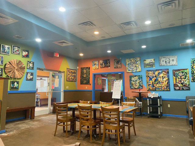 Kelli and I had burgers. The All American with tomatoes, onions, pickles, and American cheese. And the Black and Bleu burger with blacken seasoning and bleu cheese. Mark had the Fried Chicken Melt with lettuce, tomato, American cheese, bacon, and Russian dressing. A man came in selling banana bread, so Kelli bought a loaf for five dollars to help their cause.