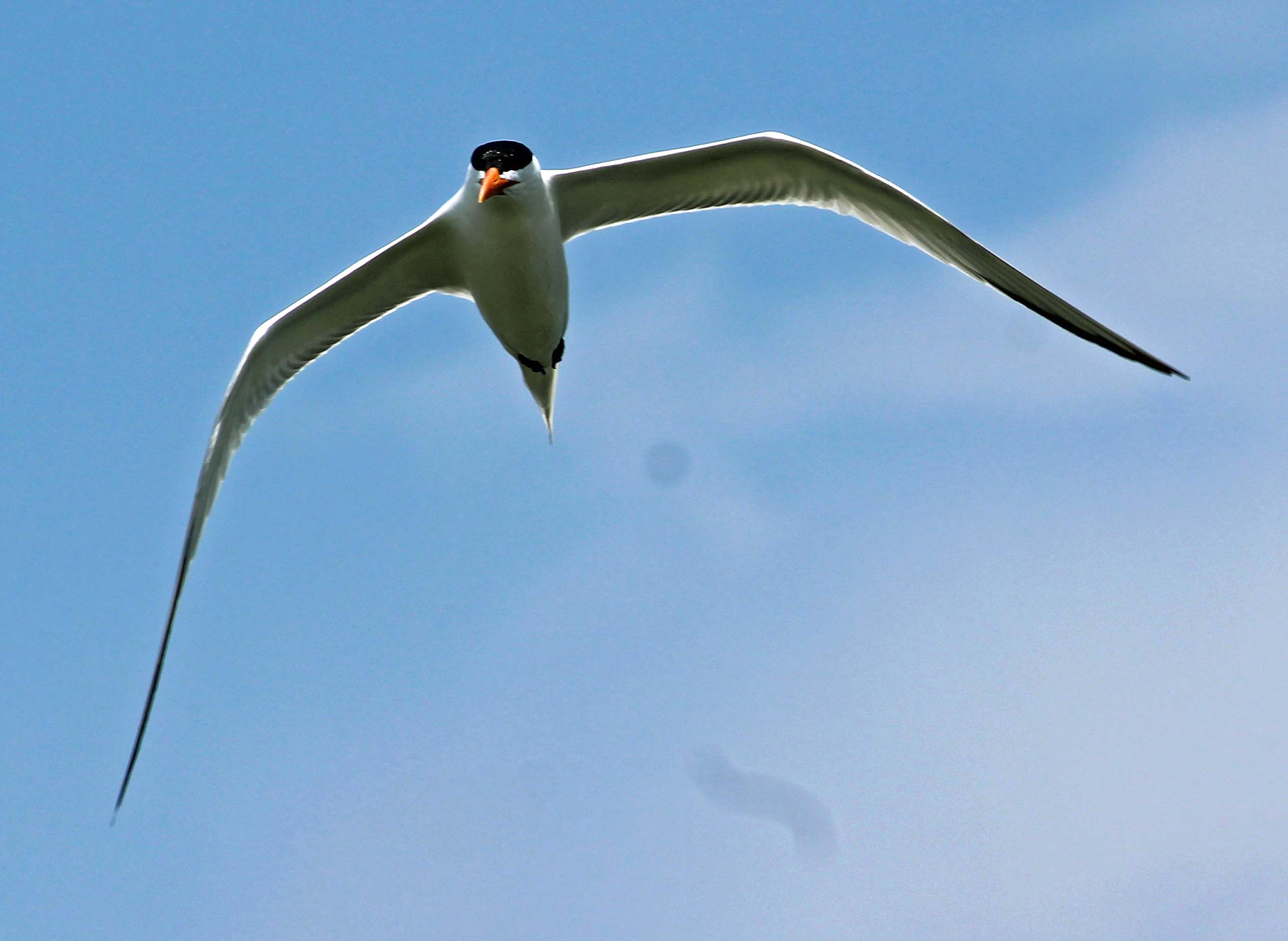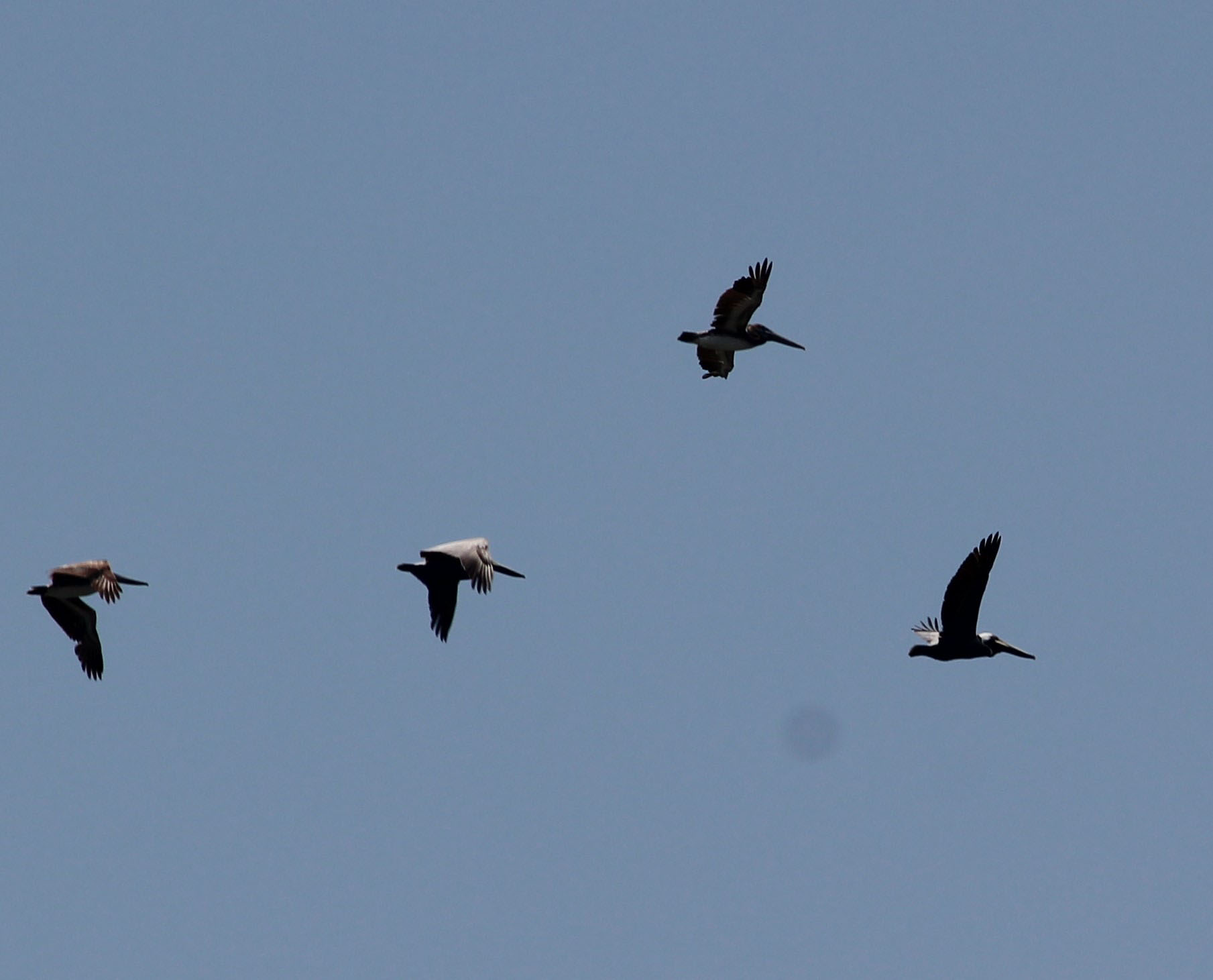 Brown Pelicans and Royal Terns streamed by over the bay.