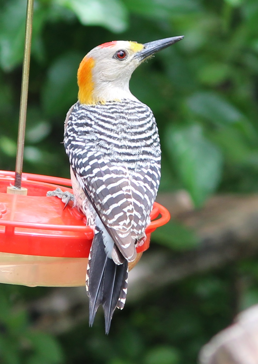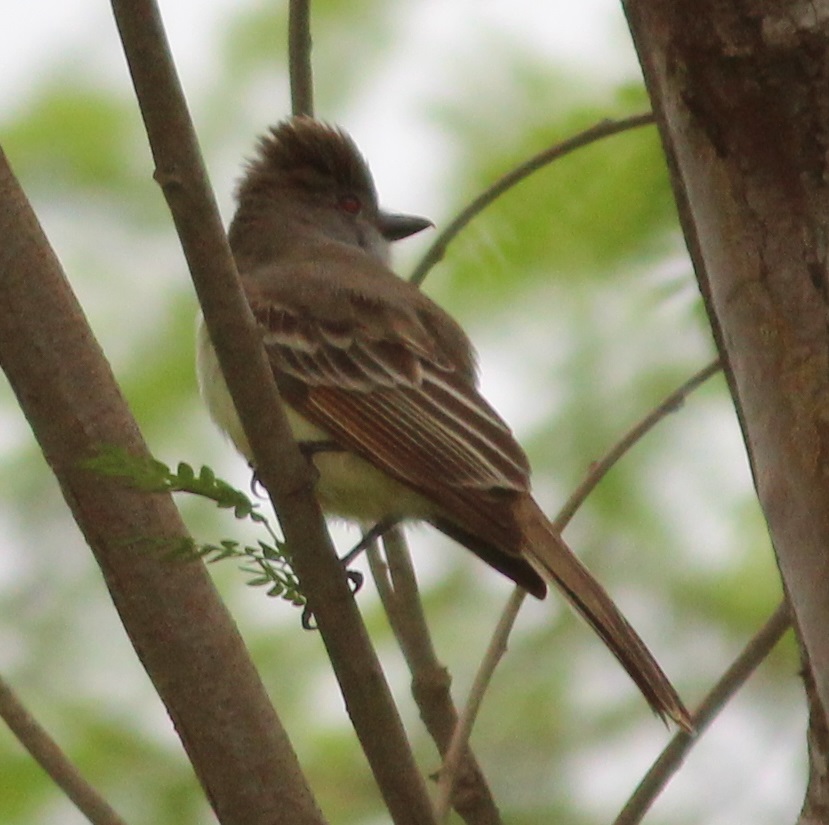 A Buff-bellied Hummingbird visited the hummingbird feeder. We saw Golden-fronted Woodpecker, Green Jay, Black-crested Titmouse, Bronzed Cowbird, and a female Indigo Bunting. Only the Altamira Oriole came in. A Brown-crested Flycatcher made an appearance up in the trees. Dove species included Inca Dove, White-tipped Dove, and many White-winged Dove.
