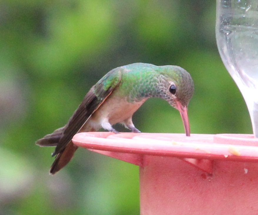 We shopped the gift shop and I saw a Buff-bellied Hummingbird at a feeder. But no one else saw it. I discovered a little Café way in the back, Le'Chez Blue, so we decided to eat here. While we ate, we did see a couple of a Buff-bellied Hummingbirds visit the feeders.