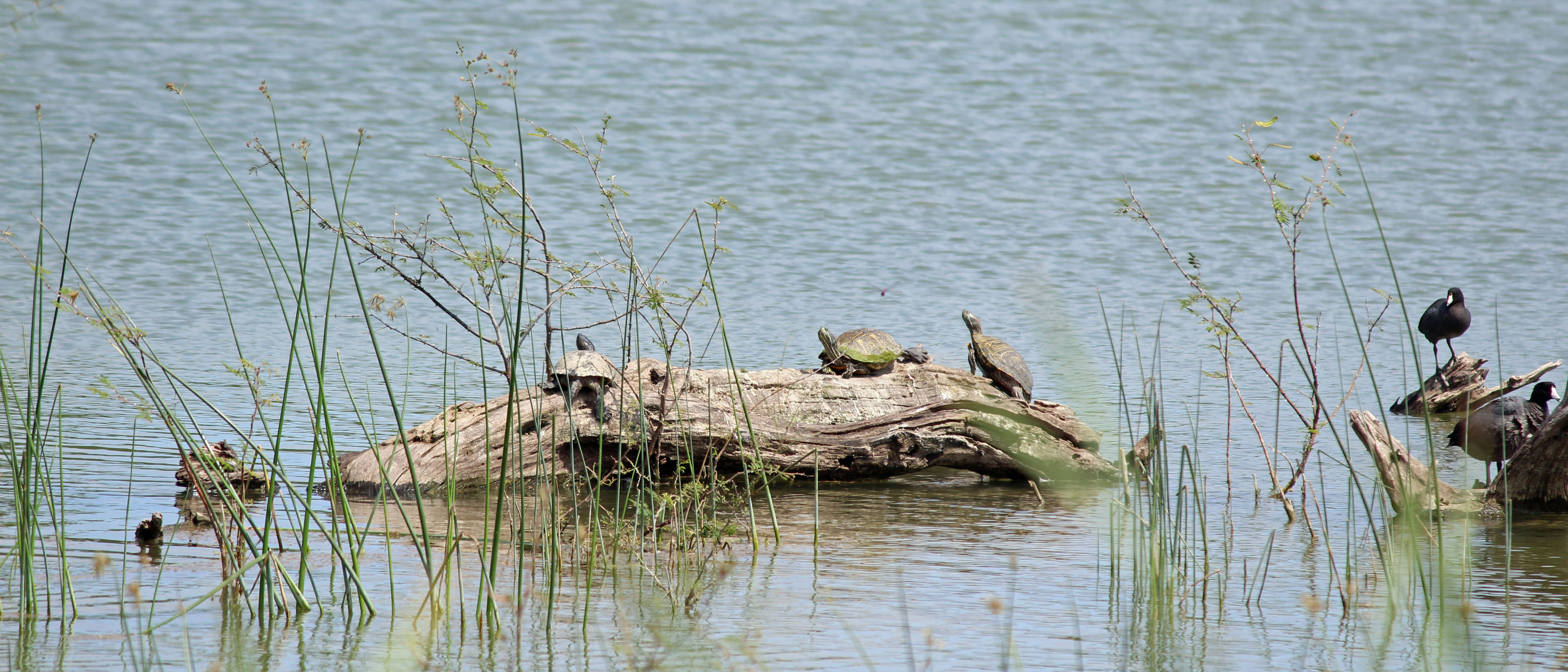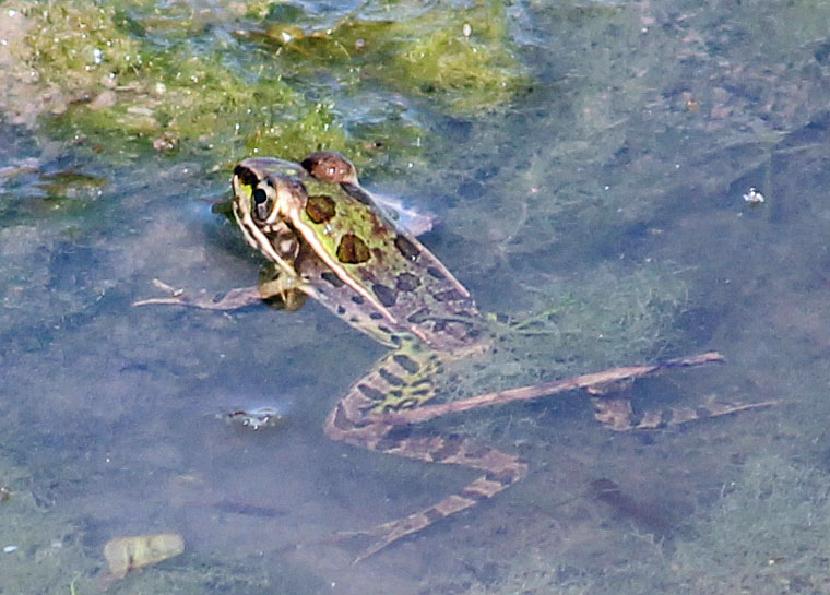 We also saw small frogs jumping into the water. From the pictures they seem to be Rio Grande Leopard Frog, Lithobates berlandieri aka Mexican Leopard Frog.