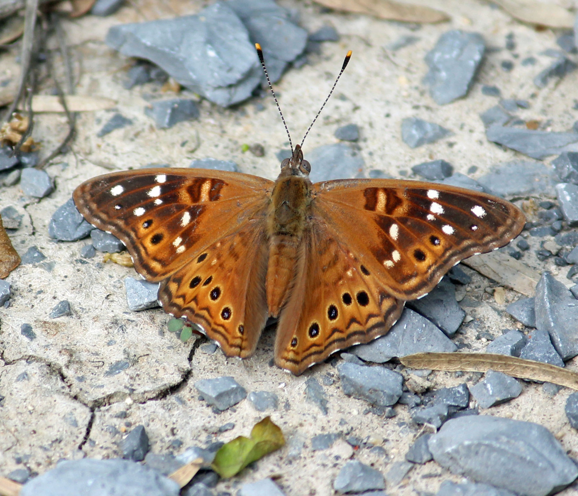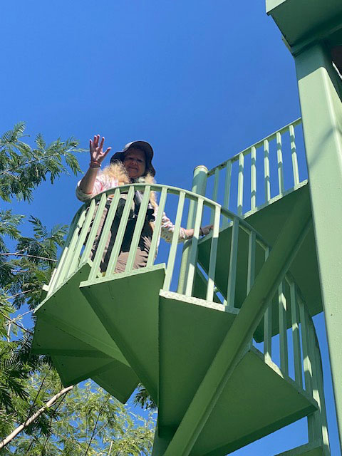 We walked back along La Parido Blanco (a recasa or the dry channel or a former stream) to the Kingfisher Overlook but found no kingfishers. We did see a Empress Leilia butterfly. We walk to the tram stop and Kelli and I took a rest in a swing chair.