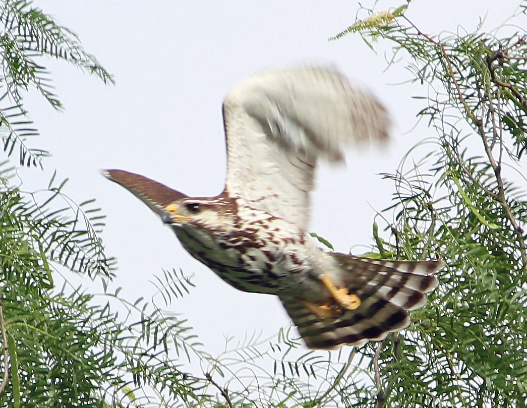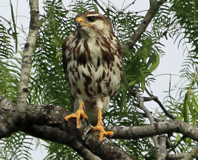 We took the tram four stops to visit the Green Jay blind. Along the way the tram operator pointed out a Great Kiskadee nest. The blind had a White-tipped Dove near the water pool. Kelli then notices a bird high up in the trees. After careful study we figured out it was an immature Gray Hawk.