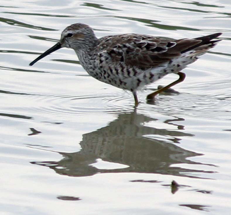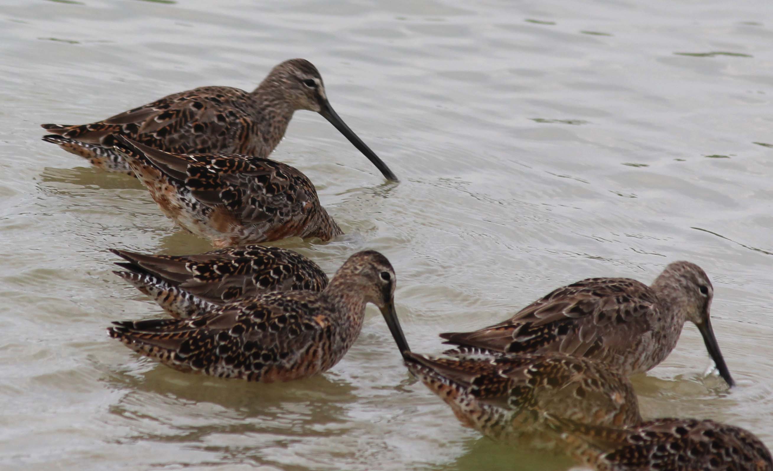 We walked to the visitors center and their wonderful wildlife viewing pavilion overlooking Ibis Pond. It was teaming with birds. A flock of Stilt Sandpipers strolled by. Mixed within them were Long-billed Dowitchers probing the mud. An American Avocet and Black-necked Stilts strolled about. A couple of Roseate Spoonbills and some Black-bellied Whistling Duck few in.