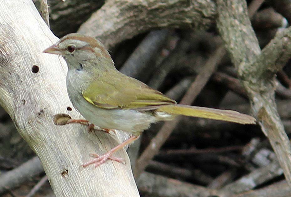 We circled the pond and viewed a Purple Martin House and heard a Sora call. The woods on the way back to the cars yielded species seen before such as: Plain Chachalaca, White-winged Dove, Mourning Dove, Chimney Swift, Golden-fronted Woodpecker, Brown-crested Flycatcher, Great Kiskadee, Scissor-tailed Flycatcher, Green Jay, Northern Mockingbird, and Olive Sparrow. I also saw a Large Orange Sulphur butterfly.