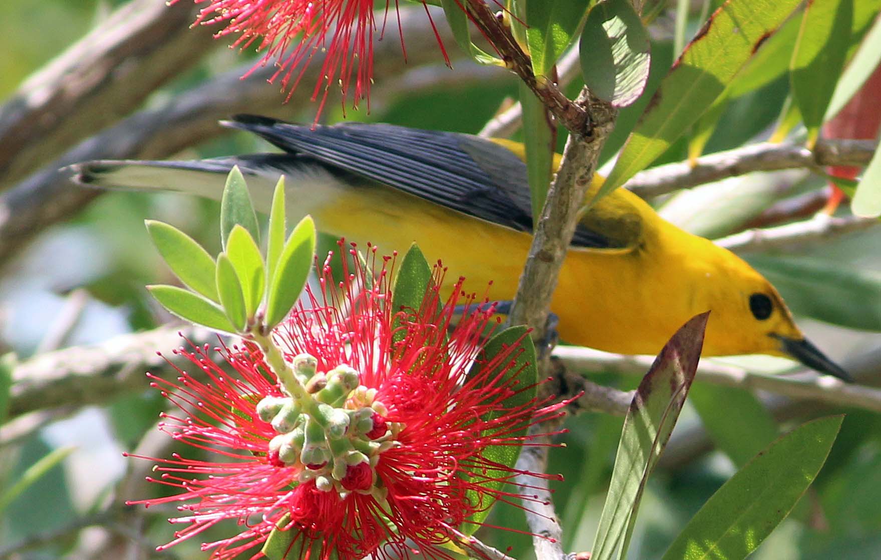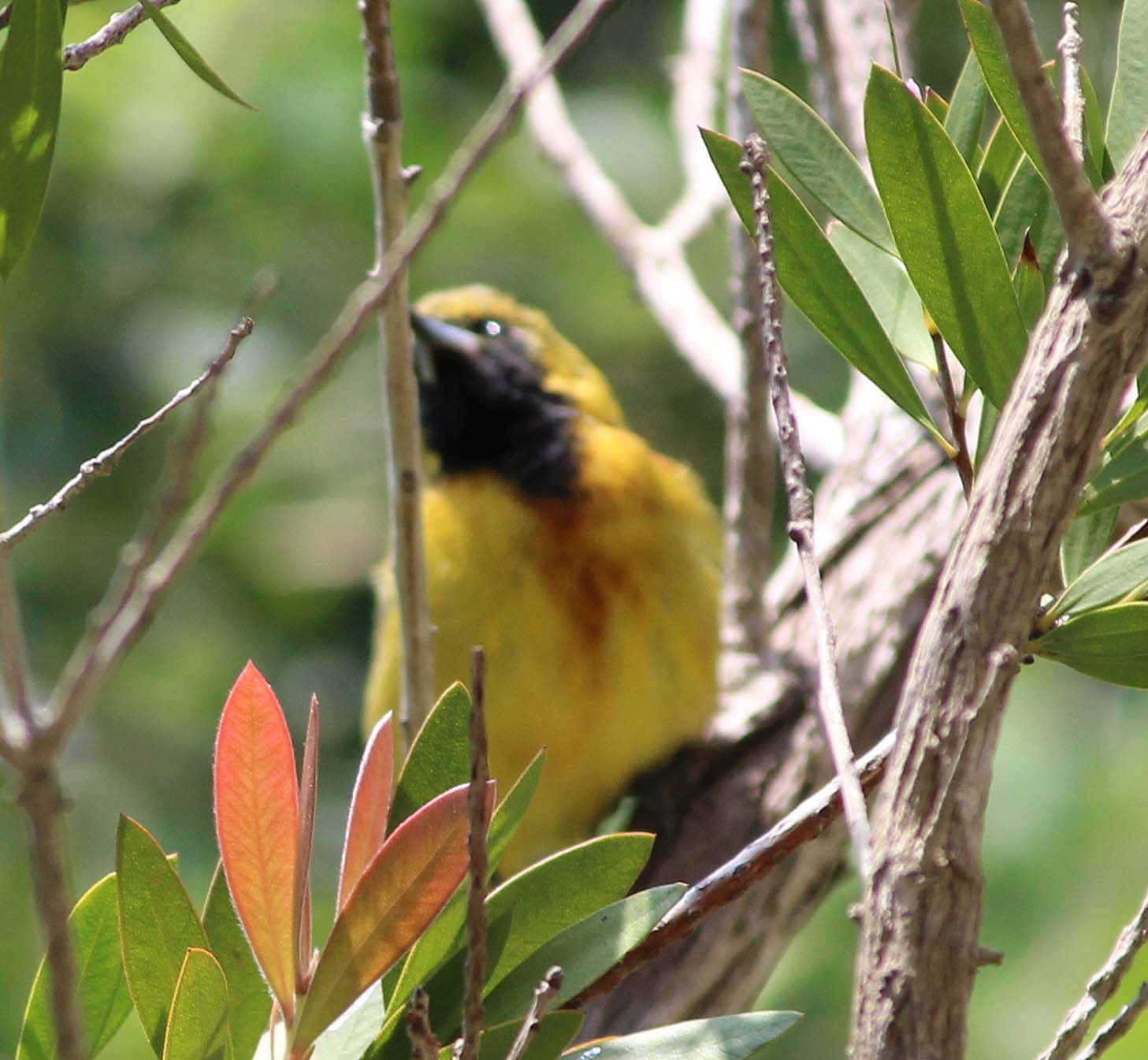 Next was the wonderful South Padre Island Birding & Nature Center. Several birders, photographers and birds were out in front. A flowering bush a few feet in front of us held a male Ruby-throated Hummingbird, Tennessee Warble, Prothonotary Warbler and an immature Orchard Oriole.